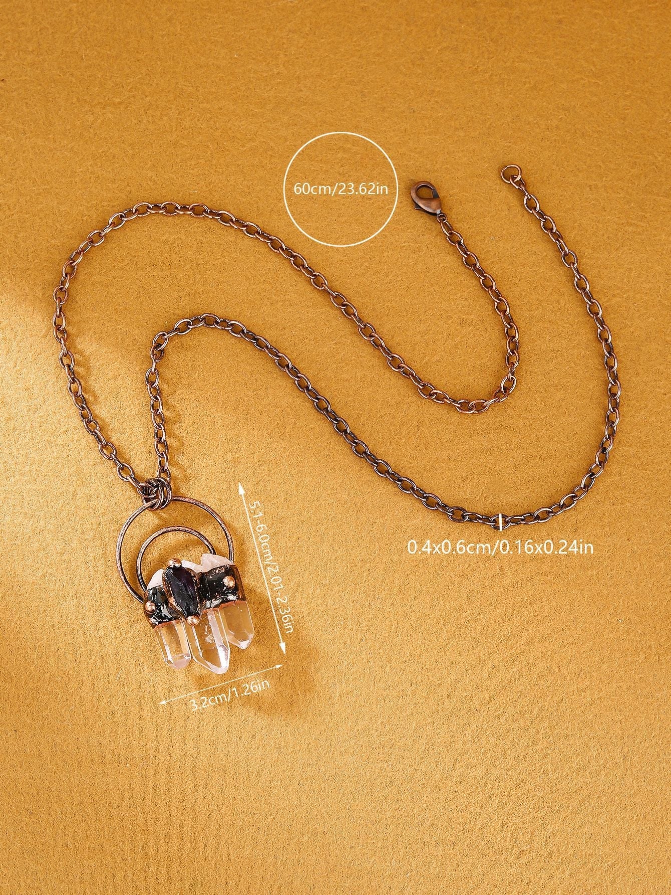 Vintage Style Three Natural White Crystal Hexagonal Pillars with Amethyst Raw Stone Pendant Necklace Ladies Party Gift